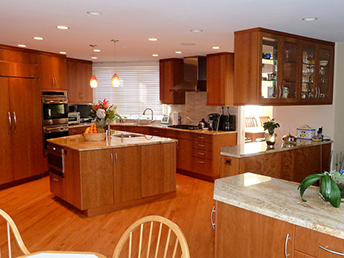 the lines are gentled and there is appealing warmth. This is a Kosher kitchen with multiple fixtures, abundant storage, and an excellent layout for a great cook. A large area of granite counter-surfaces add sumptuous earthiness. This family entertains constantly and the kitchen/family room spaces are truly the hub of the home.