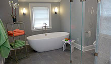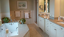 The styles of cabinet doors tend not to be a flat panel, but may instead have a recessed panel. The lighting might be more decorative, and the tiles may or may not have more detail, regardless, there is a clean and sophisticated look to the space. This style is comfortable and elegant for the majority of people; they can readily appreciate what they are seeing and feeling.