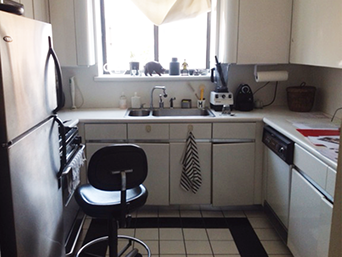 We reoriented the refrigerator to make the room flow better and offer better counter space,